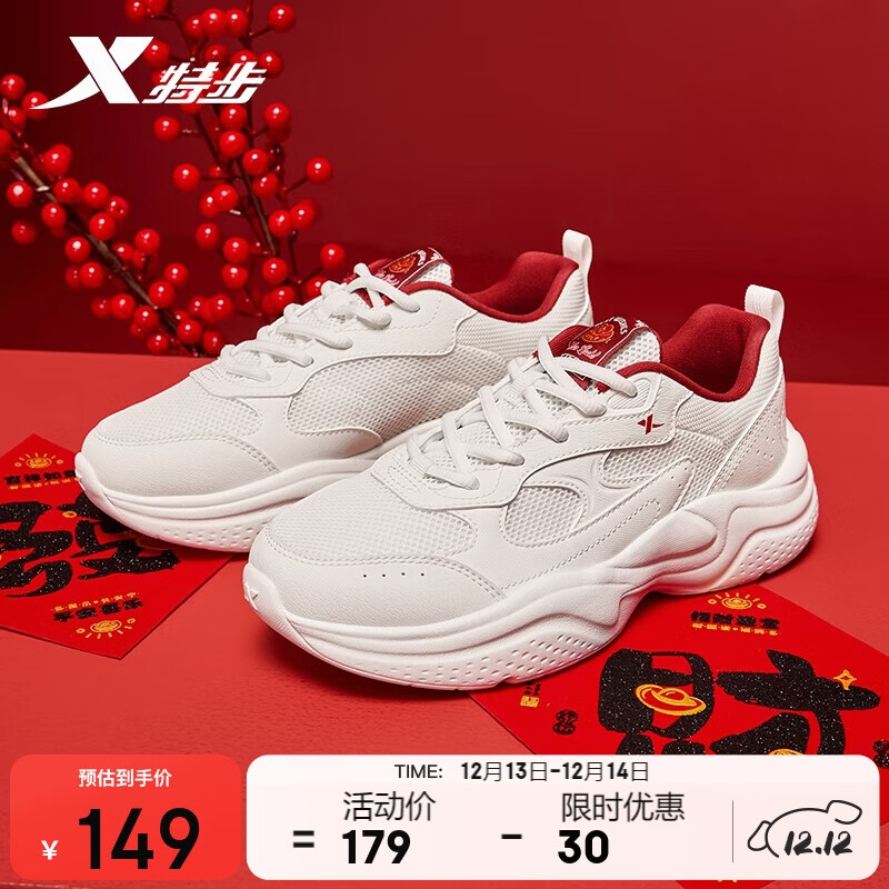 特步女鞋运动休闲鞋复古增高老爹鞋秋冬保暖防滑耐磨简约百搭鞋子女