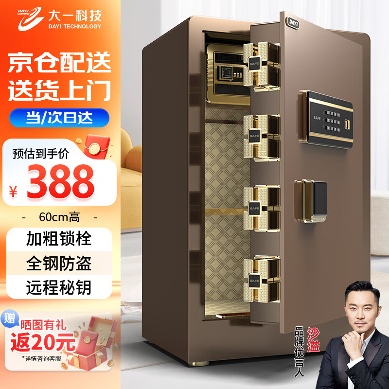 大一(DAYI)家用小型指纹密码办公财务专用保险箱全钢防盗可入墙保密保管柜 飞跃系列 60cm