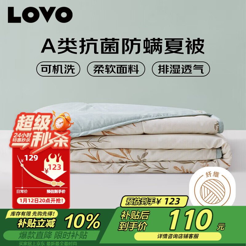 LOVO罗莱 夏凉被A类抗菌防螨夏被子纤维子空调被 2.4斤 200*230cm