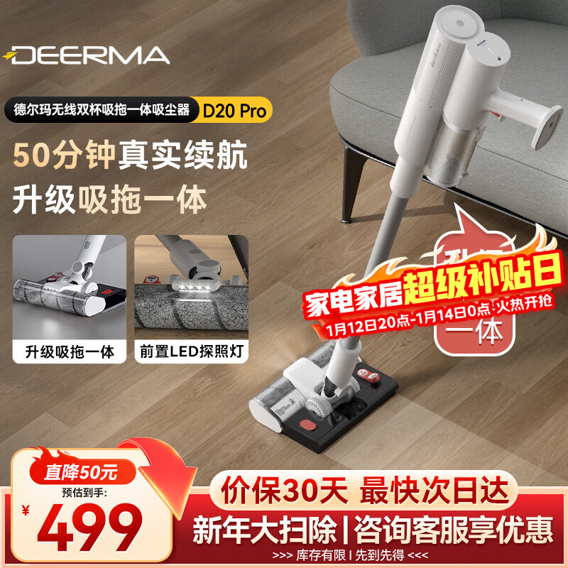 德尔玛(Deerma)吸拖一体吸尘器D20Pro高配版 无线吸尘器吸拖一体家用手持轻量化吸尘器立式充电 DEM-VC90 Pro