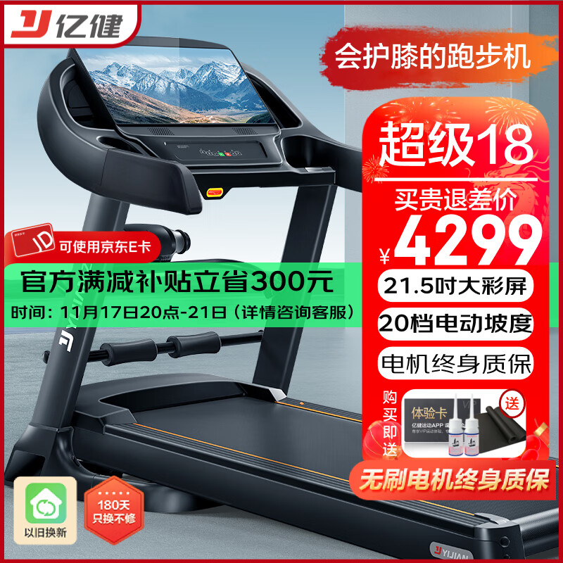 亿健(YIJIAN)跑步机家庭用健身房降噪电动坡度室内运动器械走步机心率监测8009 【21.5吋多功能】20档坡度调节