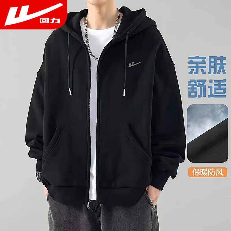 回力外套男春秋季连帽卫衣男宽松休闲针织开衫运动外套