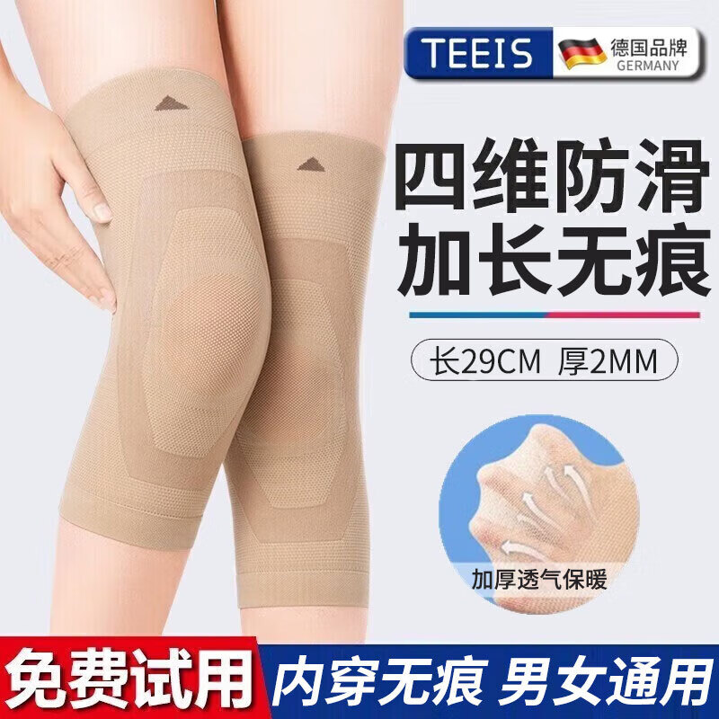 TEEIS德国护膝保暖老寒腿秋冬季女男空调房防寒关节炎运动防滑半月板 四维防滑加长护膝丨亲肤色 均码丨 80-200斤通用丨两只装