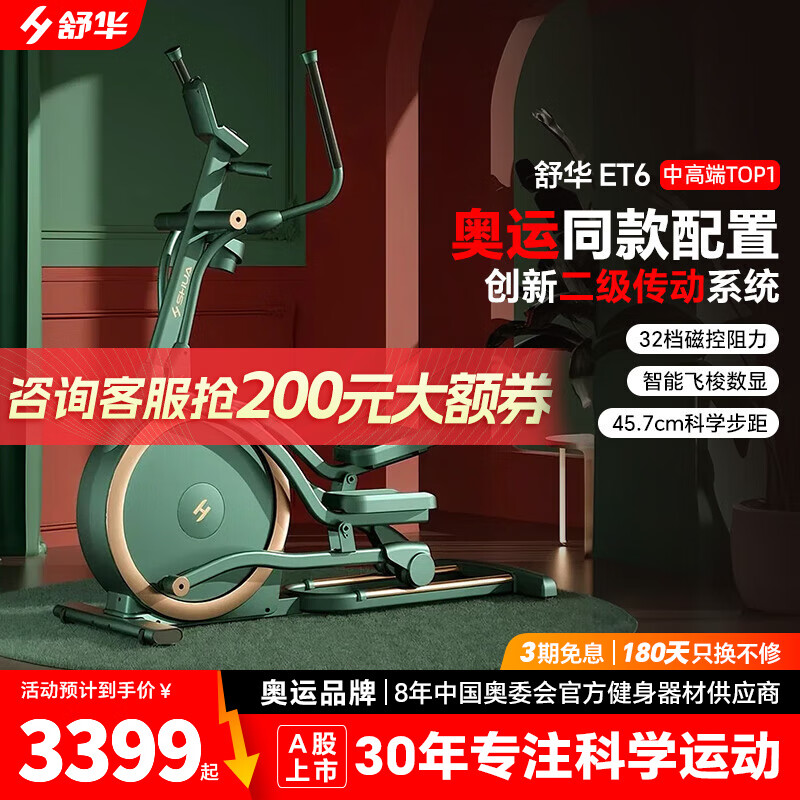 舒华(SHUA)椭圆机家用高端静音椭圆仪太空漫步机登山机健身房健身器材ET6 复古绿丨创新二级传动丨32档调控