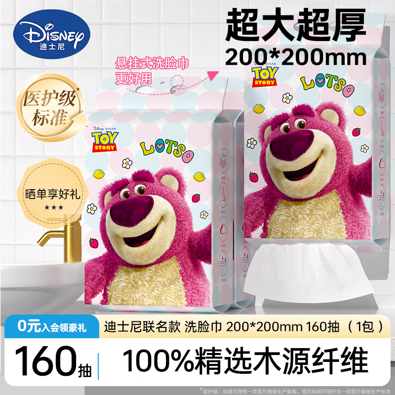 爱怡优×迪士尼联名 洗脸巾 160抽*单提一次性悬挂式洁面巾绵柔巾毛巾厚