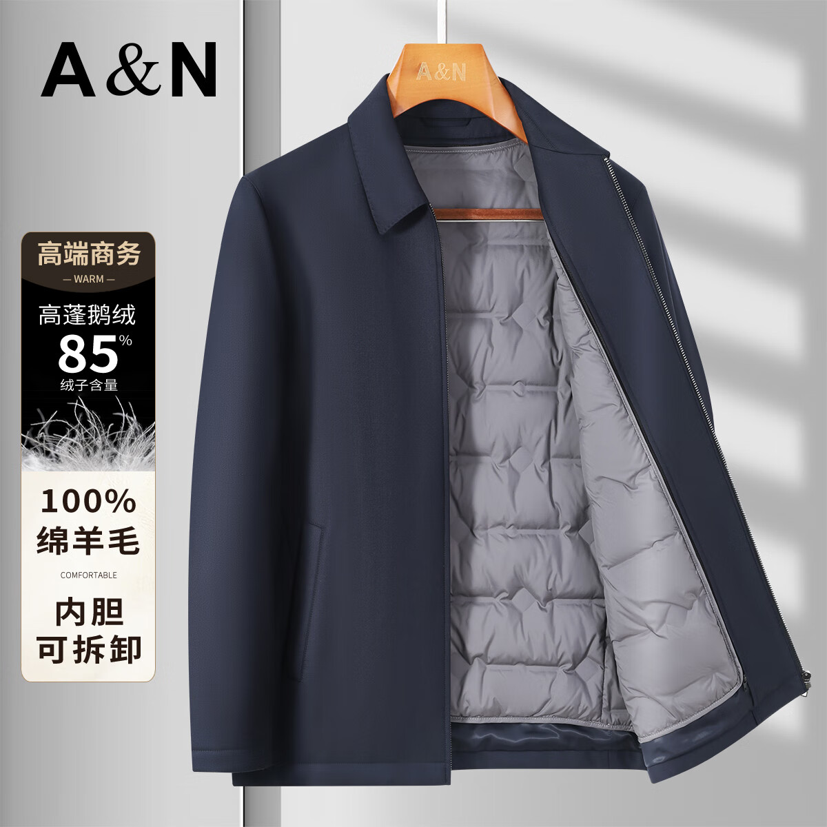 安东尼奥【高支精纺100%羊毛&可拆鹅绒内胆】高档夹克外套男商政翻领夹克