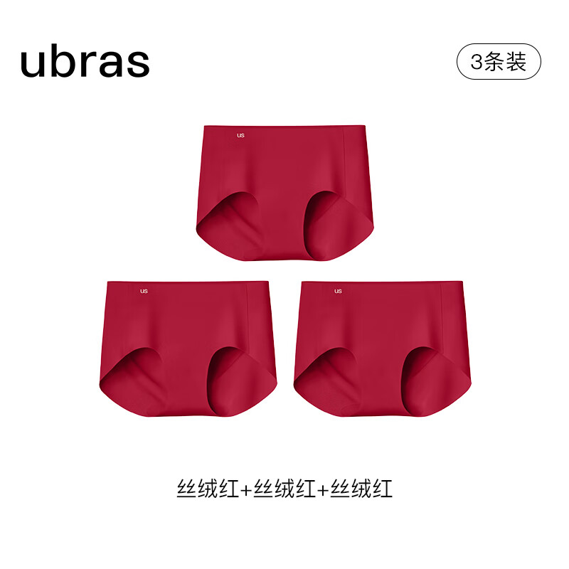 ubras【店铺推荐】无尺码女士内裤抗菌裆无痕内裤女高弹升级包臀多条装 【加长底裆】-红色+红色+红色 马上红运 均码 90-130斤