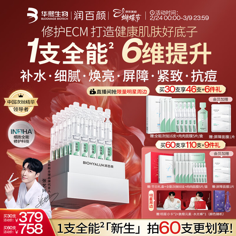 润百颜华熙生物【张艺兴同款】全能次抛30支祛痘舒缓护肤品三八节礼物