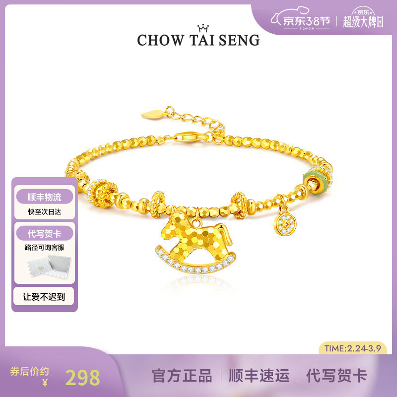周大生【生日礼物 马年限定】马年碎冰纳福银手链女生日礼物送女友 马上有钱生肖马手链