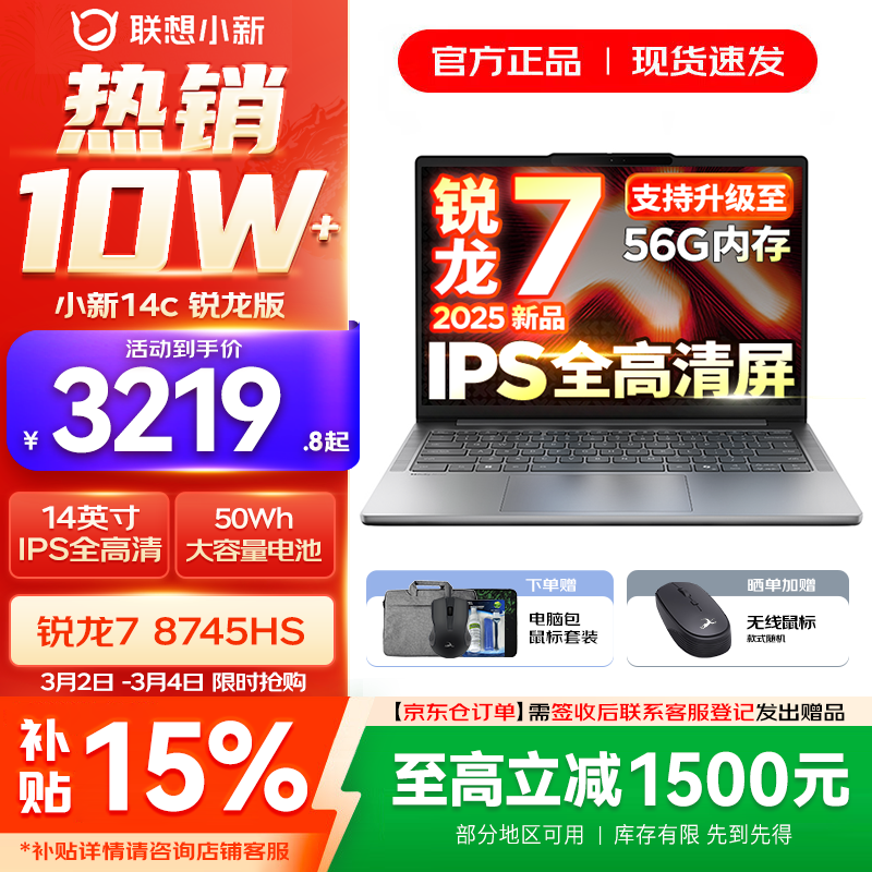联想小新14/小新Pro14 2025补贴可选 高性能超轻薄笔记本电脑 标压锐龙版 学生游戏设计办公本 锐龙R7 16G 512G|25款小新14c国补 14英寸 防眩光全面屏