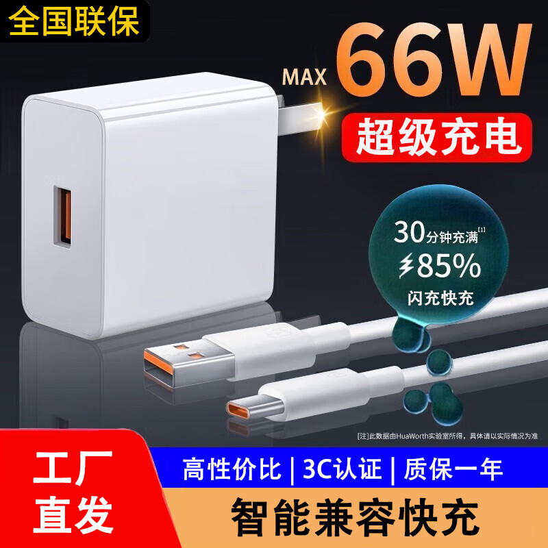 今胜数据线Type-c快充闪充66W快充电器套装超级闪充6A插头适用荣耀vivo小米oppo手机通用兼容数据线 66W套装【充电器+1米线】