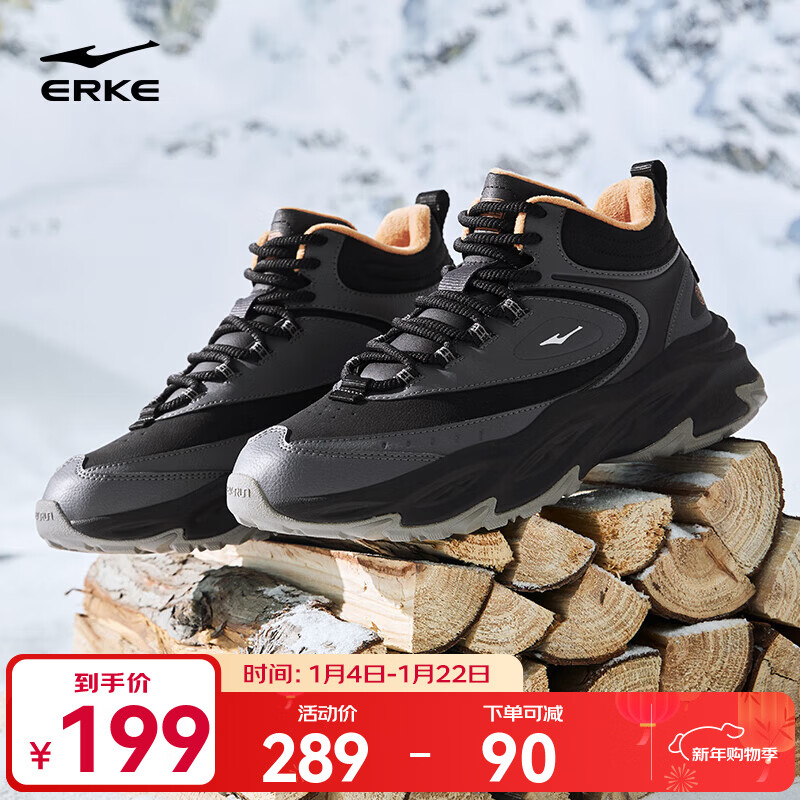 鸿星尔克加绒休闲鞋冬季新款男鞋棉鞋户外防滑保暖加厚雪地靴运动鞋暖途 碳灰/正黑 42