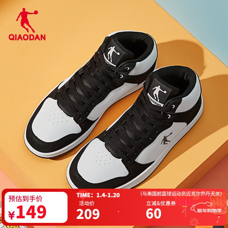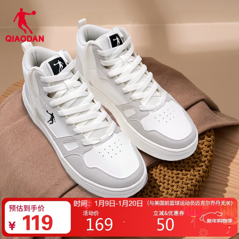 乔丹男鞋高帮板鞋男休闲运动鞋男秋冬季皮面防水男厚底减震跑步鞋