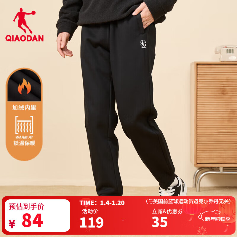 乔丹加绒运动裤男士休闲裤子男秋冬季保暖透气长裤男束脚直筒卫裤男 黑色 -束口加绒-314BR L