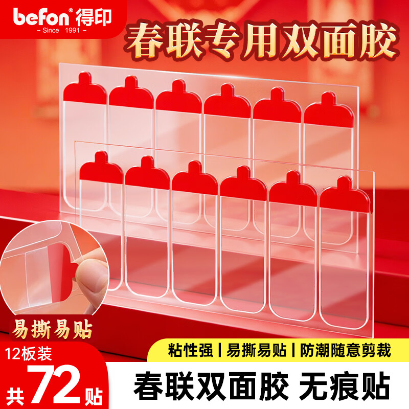 得印春联专用胶1953对联胶无痕双面胶 贴片易撕 春联贴对联贴纳米无痕双面胶贴72片/组