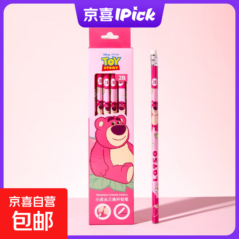 (正品优品)迪士尼艾莎蜘蛛侠史迪奇草莓熊2B正姿三角杆铅笔防滑无铅毒印花卡通铅笔A73214 草莓熊三角杆2B铅笔A73214-T 一盒/12支铅笔