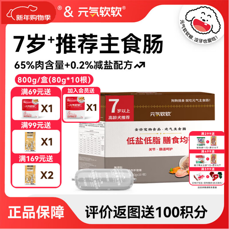 日和优宠主食肠狗主粮 宠物狗狗主食火腿肠鸡肉蔬菜味800g盒装软肉肠挑食 高龄800g/盒 4盒