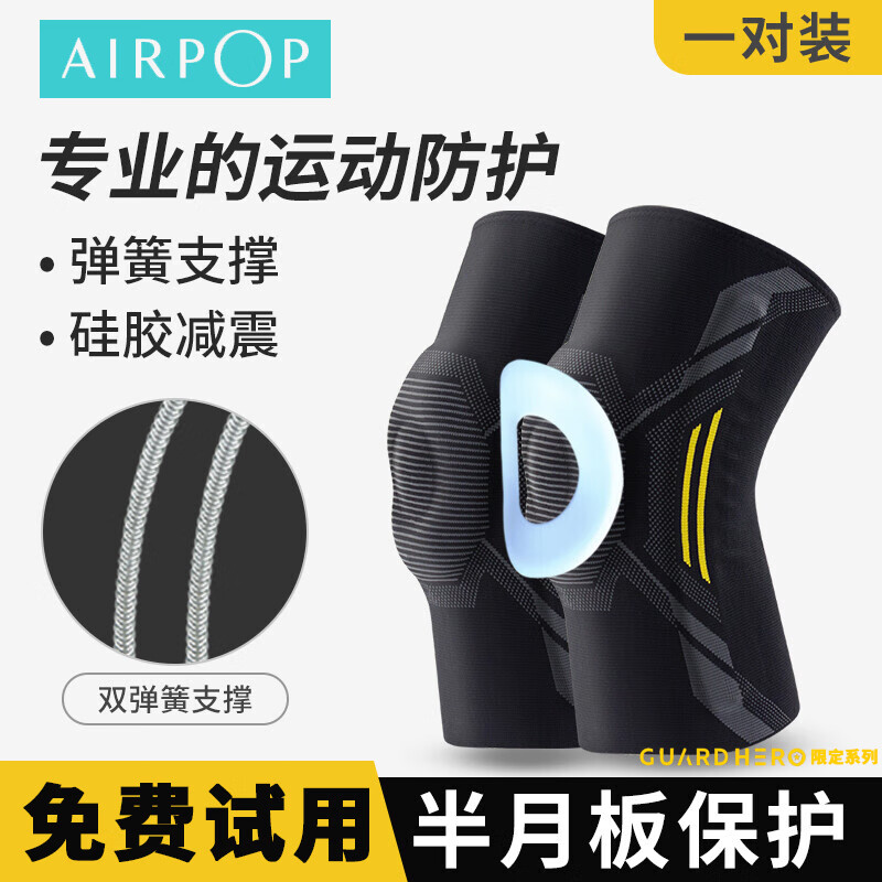 AIRPOP专业级运动篮球护膝防护关节损伤护具夏季跑步羽毛球髌骨带半月板 专业运动护膝 一对装 M【腿围41-45cm】高弹性透气