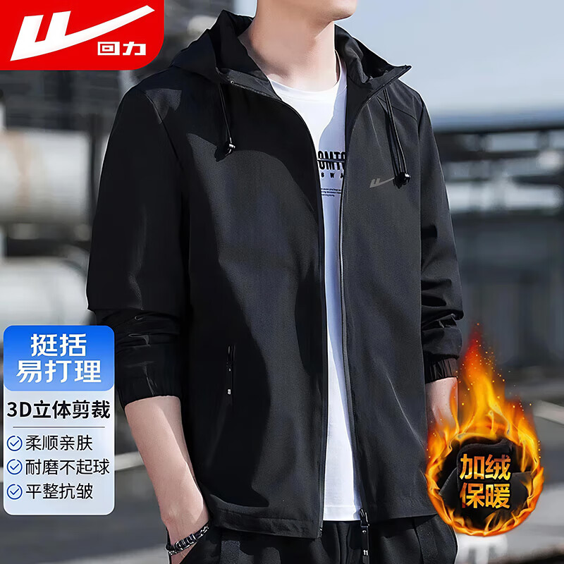 回力连帽夹克外套男加绒保暖冬季运动棒球服休闲男装户外风衣
