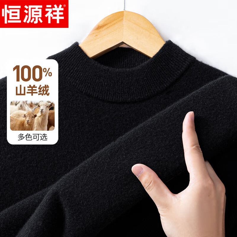 恒源祥羊绒衫男100%纯山羊绒秋冬季半高领男士针织衫保暖百搭毛衣厚款
