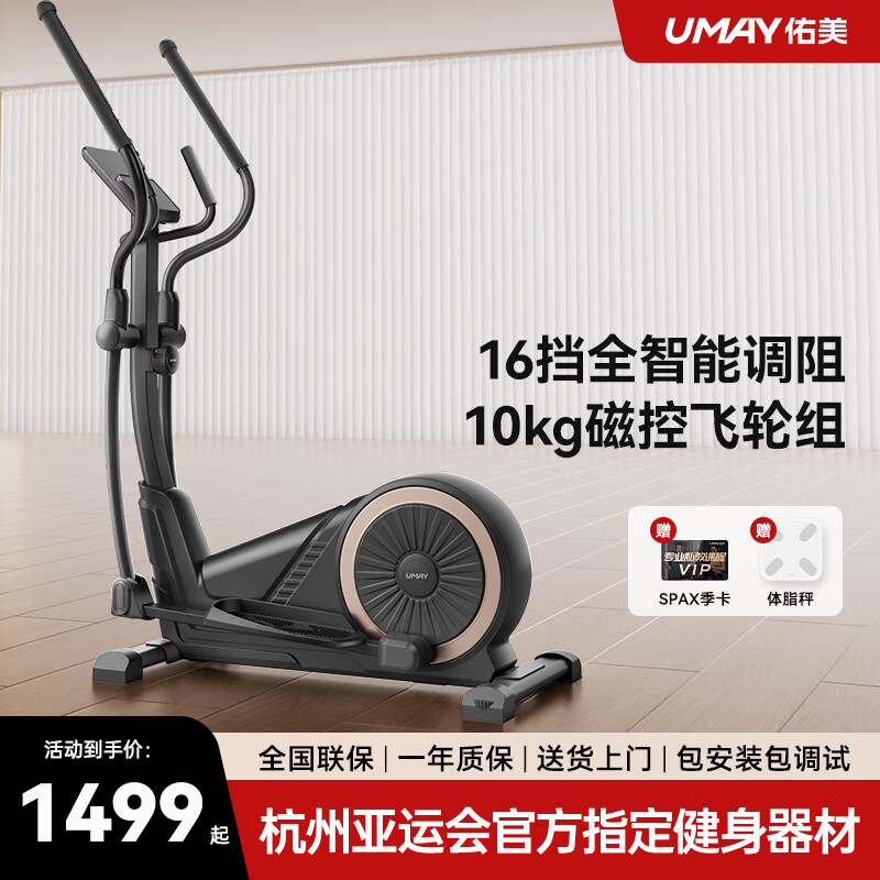 佑美【新品】亚运椭圆机自发电有氧运动家用智能椭圆仪踏步机器材C7 C7L黑-16档手动调阻-包安装-免插线