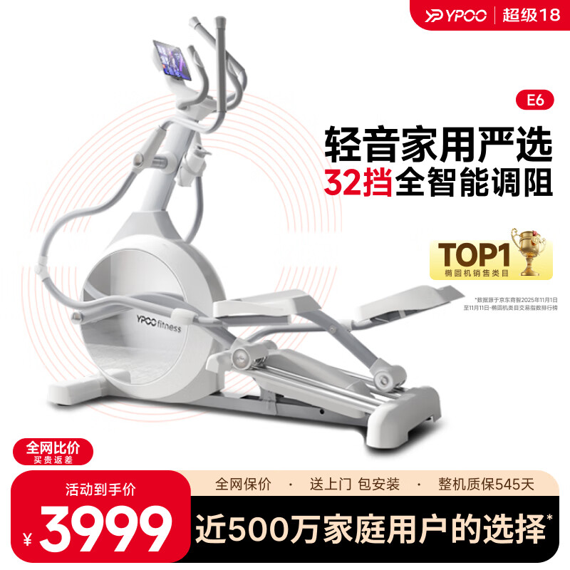 易跑YPOO椭圆机家用高端智能静音太空漫步仪椭圆仪健身运动器材E6 轻奢版/意式镜面美学/12°电动坡度