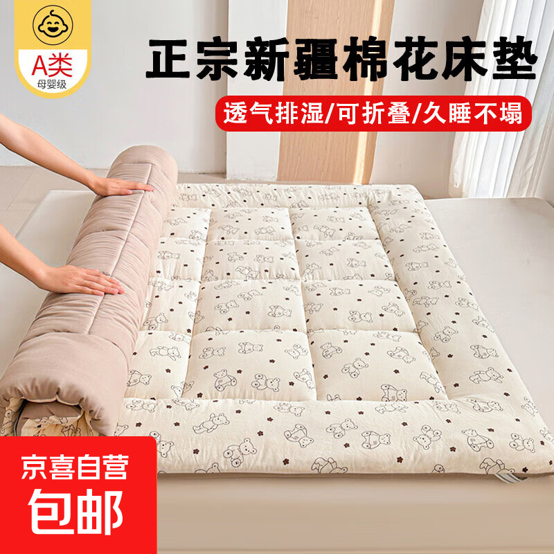 新疆棉花床垫软垫家用卧室榻榻米垫子床褥子加厚睡垫宿舍单人垫被 比利小熊【A类 新疆棉花填充】床垫 双人床 180x200cm【约7斤】