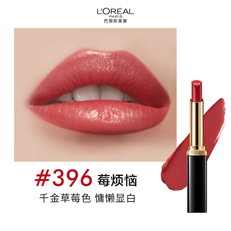欧莱雅浮光细管口红396莓烦恼千金草莓色滋润显白唇膏女神节礼物
