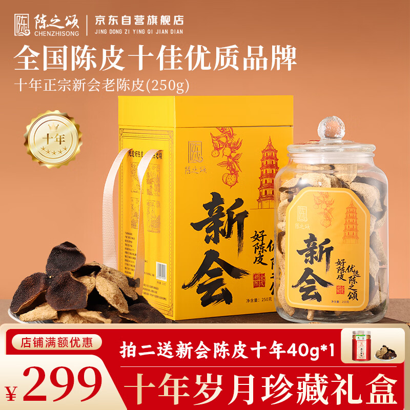 陈之颂广东特产正宗新会陈皮干仓10年圈枝大红皮250g臻品送长辈妈妈礼物