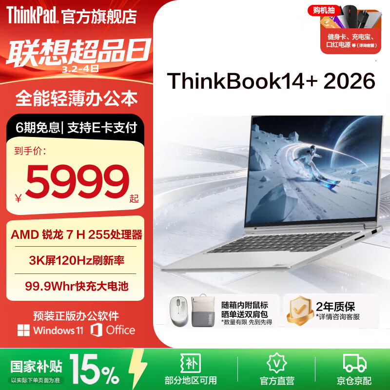 ThinkPad【国家补贴15%】联想ThinkBook14+2026 锐龙 7 处理器升级版 14.5英寸轻薄商务笔记本电脑 新品 锐龙7 H 255/32G/1T星耀白