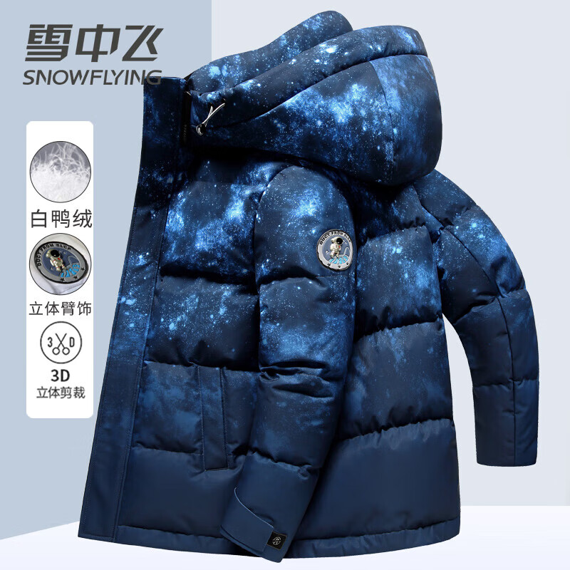 雪中飞羽绒服男鸭绒冬季可脱卸帽撞色时尚星空渐变加厚保暖休闲外套180