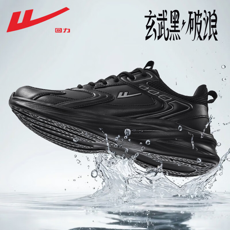 回力官方运动鞋男款黑色秋冬季皮面软底休闲跑步鞋子男 191 黑色 41
