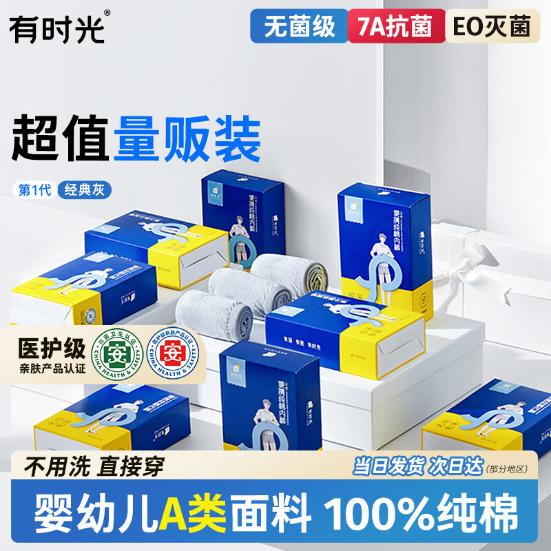 有时光一次性内裤男平角纯棉免洗灭菌旅行出差户外便携独立包装24条3XL