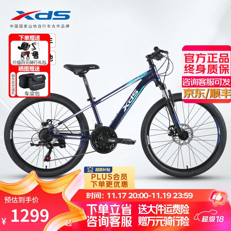 喜德盛(xds)青少年山地车中国风21速变速碟刹铝合金车减震前叉学生单车通用车 24寸幻彩蓝135-165 21速