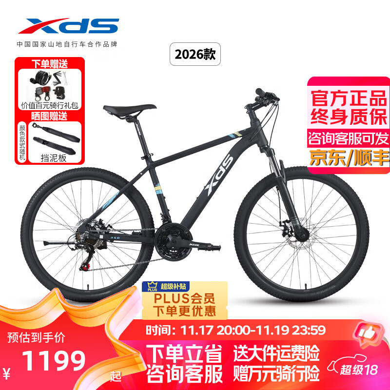 喜德盛(xds)山地自行车黑客350铝架21速避震前叉机械碟刹 2026款-黑/银 17