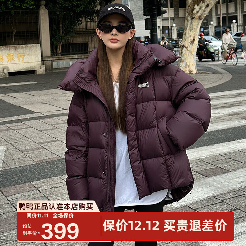 鸭鸭(YAYA)羽绒服女冬季新款短款连帽加厚气质90鸭绒宽松休闲外套DS 浆果紫色 S (155)
