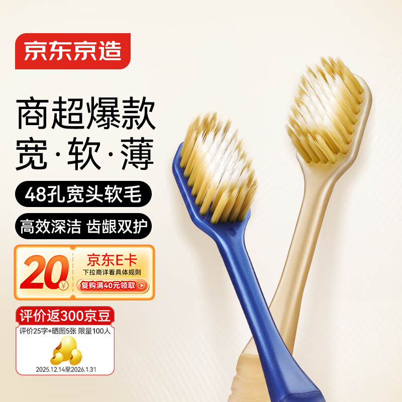 京东京造宽头净齿软毛牙刷48孔宽头护龈超细软6支装深层清洁家庭装