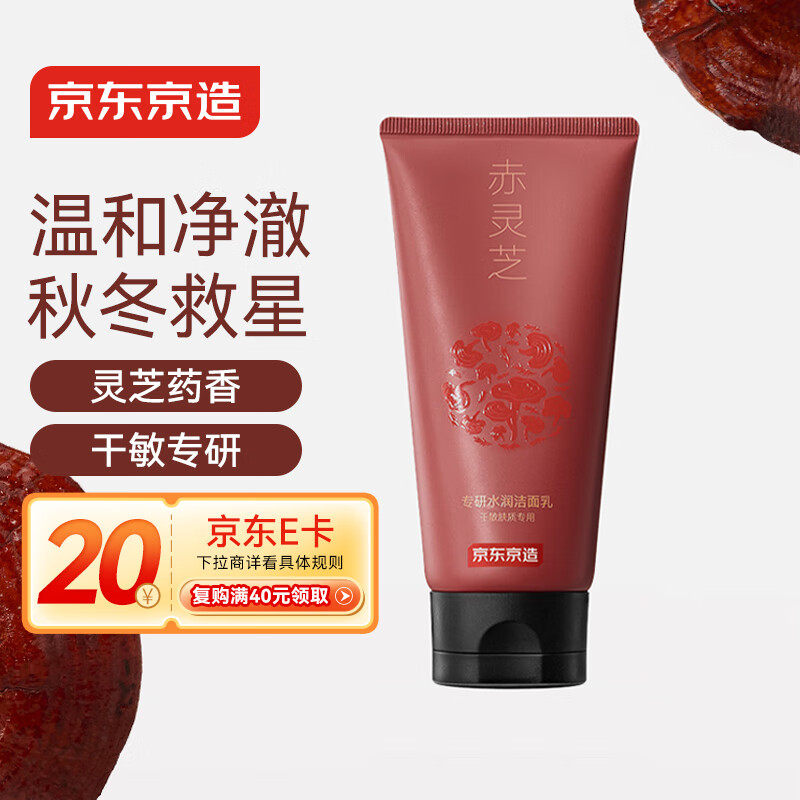 京东京造专研植萃水润洁面乳100g赤灵芝氨基酸洗面奶男女士护肤品敏肌