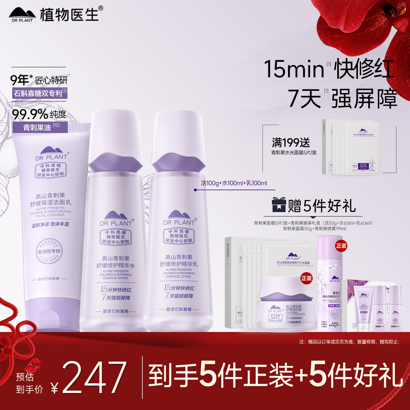 植物医生青刺果舒缓修护补水保湿敏感肌洁水乳护肤品套装38女神节礼物