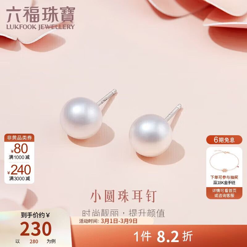 六福珠宝38节礼物 Ag925淡水珍珠耳钉耳饰 F87DSR001 总重约1.10克
