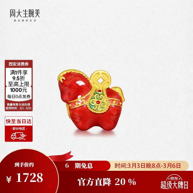 周大生福韵国宝黄金腕美唐马转运珠锦绣前程生肖马38妇女节礼物 马上旺
