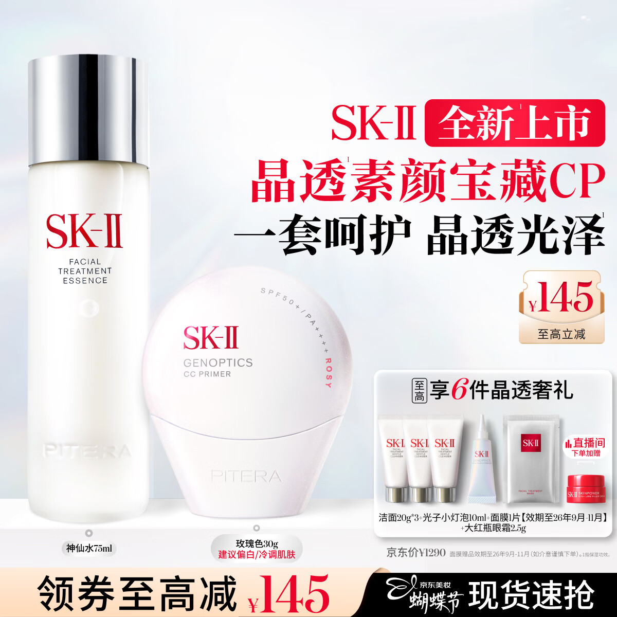 SK-II全新小贝壳调色防晒CC霜玫瑰色神仙水75ml化妆护肤品套装礼物sk2