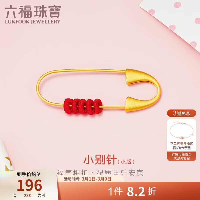 六福珠宝银925吉祥别针孕妇宝宝胸针满月周岁礼 GPSTBA0001 总重约2.41克