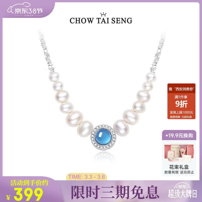 周大生生日礼物海洋之心蓝眼泪碎银子珍珠项链女锁骨链送女友