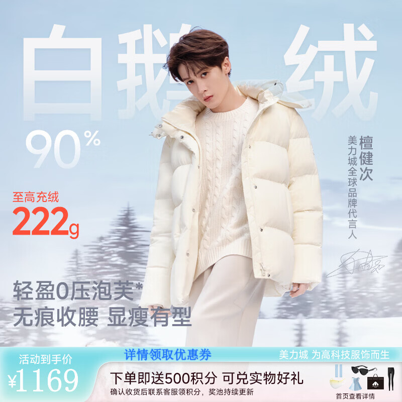 美力城【檀健次同款】羽绒服女士新款可调节收腰保暖防风鹅绒服外套019 极光白 M