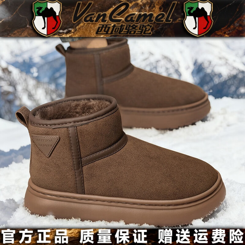 西域骆驼(VANCAMEL)雪地靴棉鞋男鞋女鞋鞋子情侣款男女同款2025年秋冬季新款加绒靴子 【官方正品 品质保证】咖色配色 43