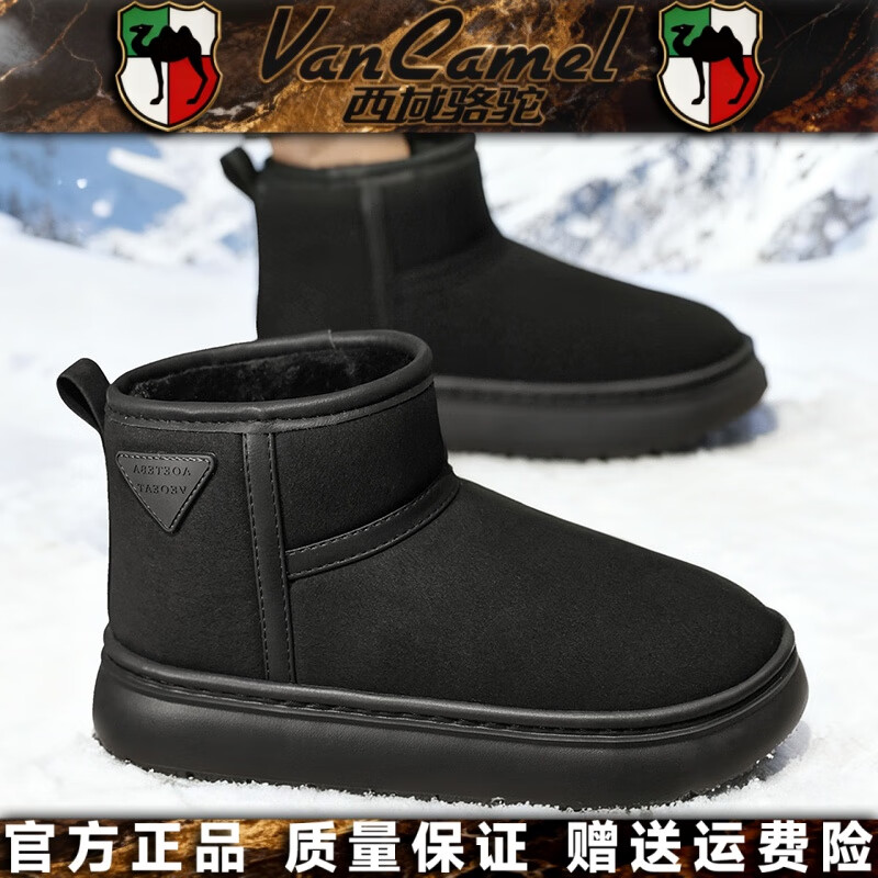 西域骆驼(VANCAMEL)雪地靴棉鞋男鞋女鞋鞋子情侣款男女同款2025年秋冬季新款加绒靴子 【官方正品 品质保证】黑色配色 43