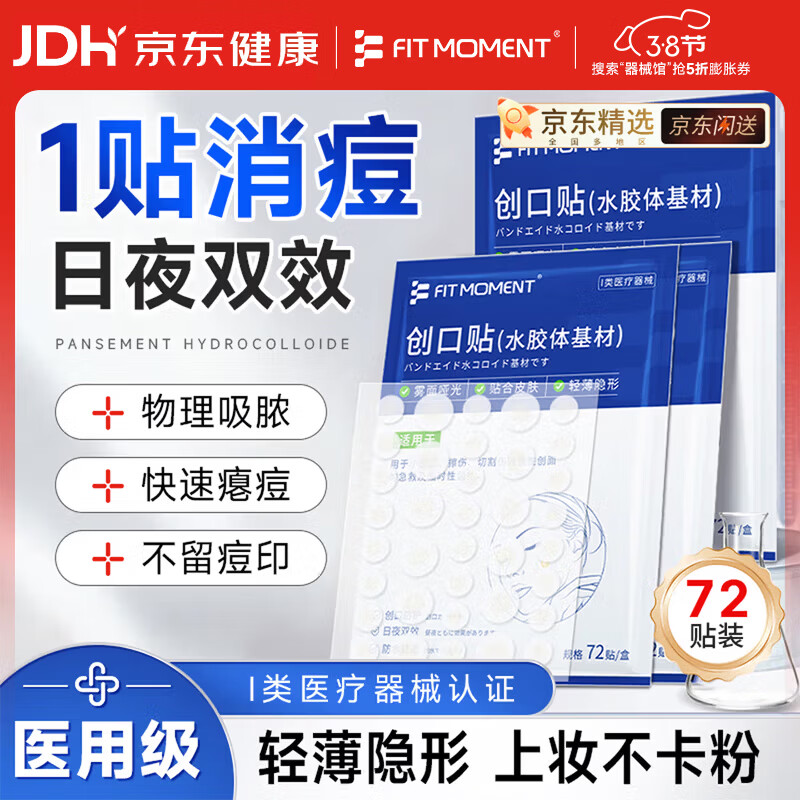 FIT MOMENT痘痘贴医用隐形净痘贴消炎吸脓祛痘贴创口贴水胶体无菌敷料72贴