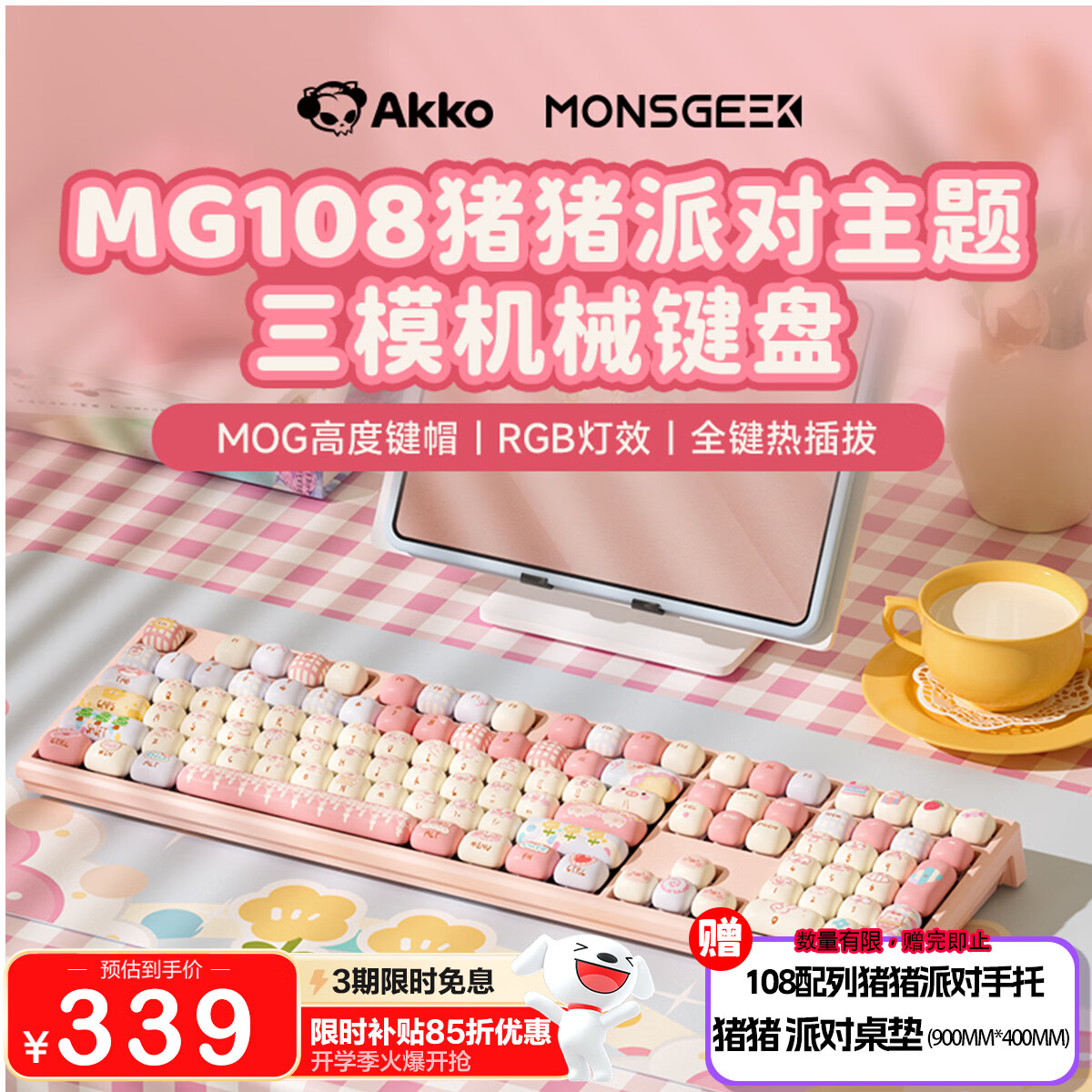 AKKO猪猪派对108键蓝牙无线机械键盘女生高颜值可爱三模办公热插拔有线客制化游戏键盘