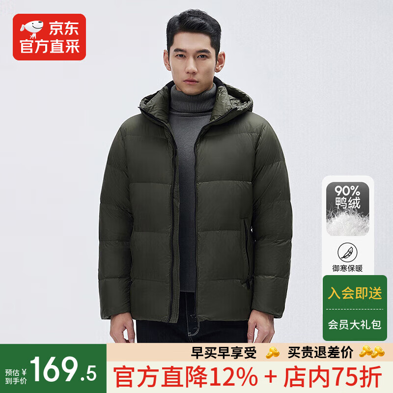 HEURE+222025冬季新款羽绒服男款连帽户外休闲时尚面包服保暖外套 军绿色 L (170) 90-125斤